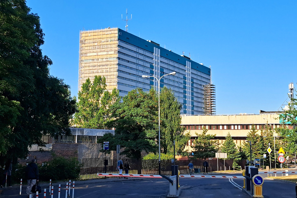 Zamówieniem objęta jest całość fasady budynku A1 od kondygnacji P02 (wraz z wyburzeniem i montażem nowych schodów i zadaszenia dla wszystkich wejść do P18 , w zakresie ścian: zachodniej, południowej, wschodniej z wyłączeniem części niskiej budynku od strony zachodniej. Część niska przylegająca do budynku A1 będzie realizowana w części wschodniej, łącznie z poziomem dachu. Roboty budowlane obejmują swoim zakresem również termomodernizacją ścian fundamentowych do wymaganego poziomu.
