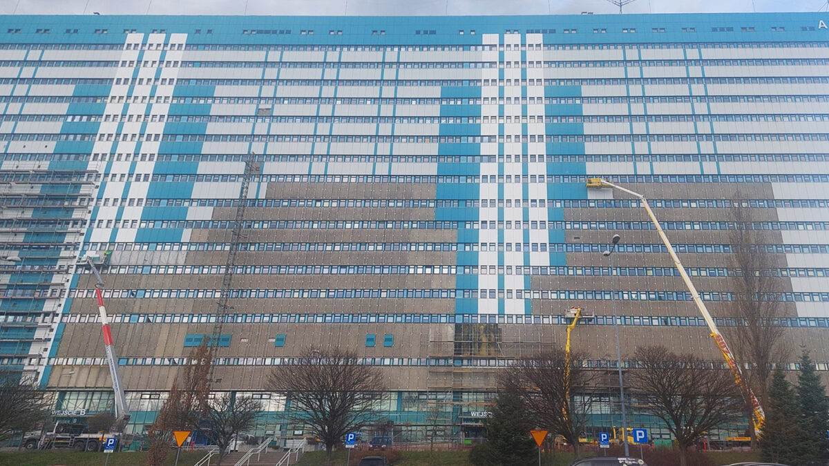 Głęboka termomodernizacja strategicznego budynku kampusu Centrum Kliniczno-Dydaktycznego Uniwersytetu Medycznego w Łodzi – elewacja lekka-mokra A1